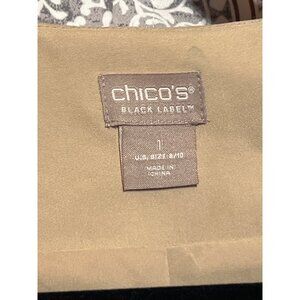 This Chico's Black Label blazer is an excellent addition to a professional wardrobe. It features a single button closure, two front pockets, and a tailored design. Constructed with high-quality materials, it's designed to offer a modern and sophisticated look. Ideal for business settings, it ensures both style and comfort.