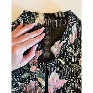 Chico's Black Label Women's Floral Birds Blazer Jacket Size 2 Large 3/4 Sleeve, great condition, Beautiful Blazer, Lined, Polyester, acrylic, wool fabric with a luxurious woven feel, measurements in pics, smoke free home, Retail $150