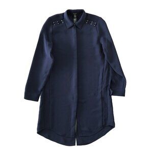 Chico's Black Label Womens Size 00 Navy Oversized Long Tunic Blouse Jacket