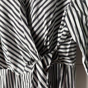 Chico's Black Label Wrap Shirt Black & White Stripe Size 2 Cotton Blend