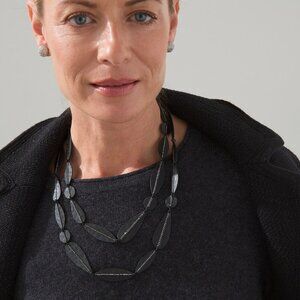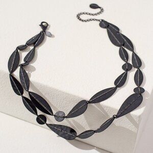 Elegant black layered necklace. Unique leaf-shaped design. Perfect for any occasion. I bought for event but didn’t wear.