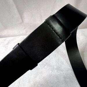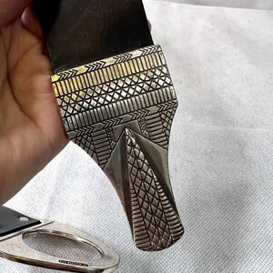 Chico's Black Leather Adjustable Belt 2484 Tribal Metal Buckle & Tab M/L