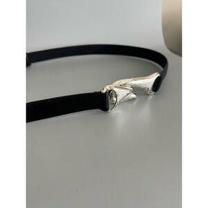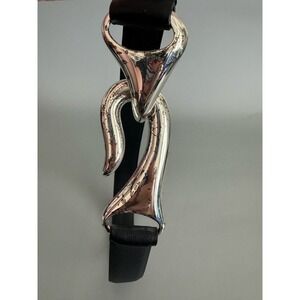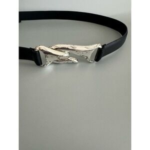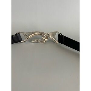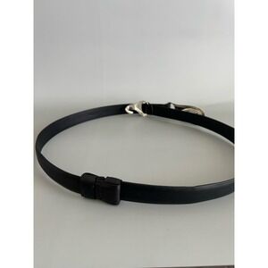 Chico’s Black Leather Belt With Silver Colored Hook Buckle Size M / L