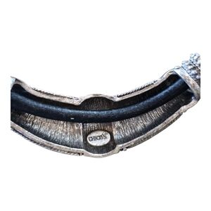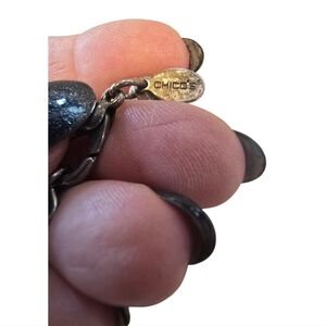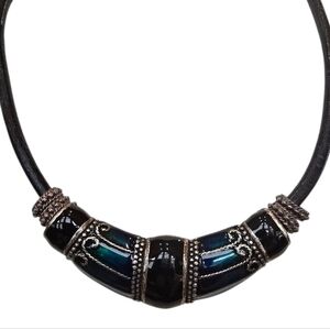 Chico's Black Leather Enamel Silvertone Slider Pendant Boho Necklace