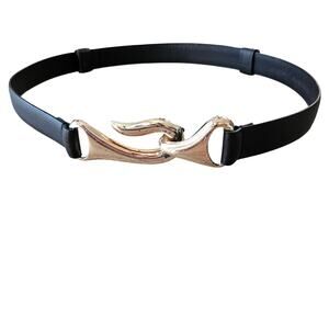 Chico's Black Leather Slide Adjustable Rose Gold Tone Hardware Belt Medium/Large