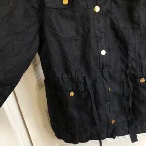 Chico's Black Linen Utility Jacket 100% Linen 2 LG Lightweight Zip Military Chic