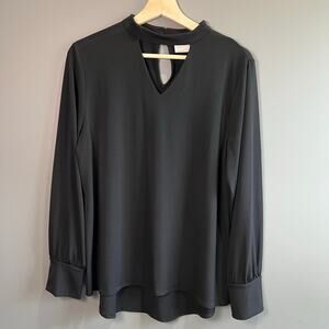 Chico’s Black Long Sleeve Mock Neck Keyhole Blouse Top Size 2/ 12