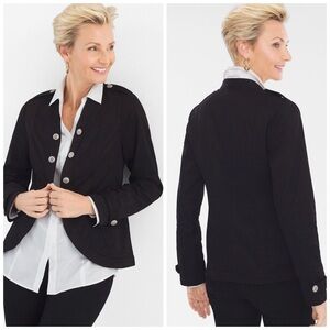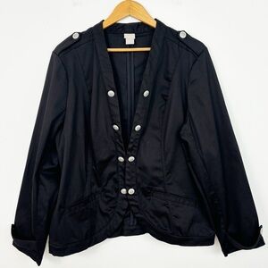 Chico’s Black Military-Detail Sateen Long Sleeves Button Down Jacket Size XL/16