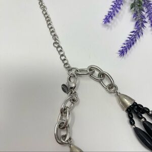 Black beaded multi strand silver tone statement necklace