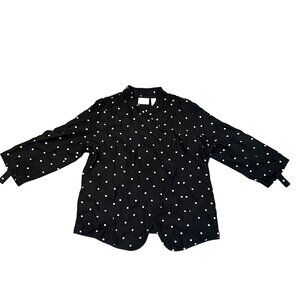 This Chico’s black polka dot draped cardigan blends effortless elegance with casual comfort. Featuring a soft, lightweight fabric, a flowy open-front design, and adjustable roll-tab sleeves, this versatile piece is perfect for layering. The classic black and white polka dot print adds a timeless charm, making it a must-have for any wardrobe.