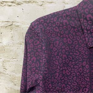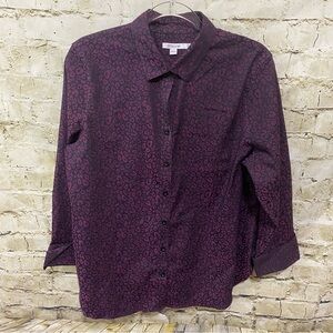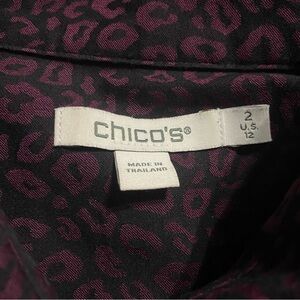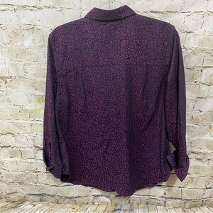 Chicos Womens Size US 12 Black Purple Cheetah Print Cuffed 3/4 Sleeve Button Up in good used condition. No stains, tears or rips.