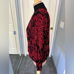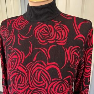 Chico’s Black & Red Floral Roses Mock Neck Pullover Sweater