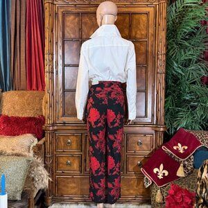 Chico's Black Red Floral So Slimming Brigitte Cotton Blend Slim Ankle Pant