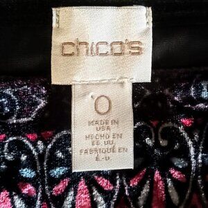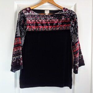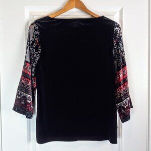 Pretty velvet top with sheer burnout sleeves from Chico's in rich black and red.