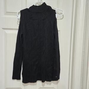 Chico’s Black Ribbed Cold Shoulder Mock Neck Sweater Size 0