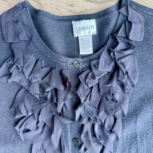 Chico’s Black Ruffle Front Button Elbow Length Sleeves Cardigan