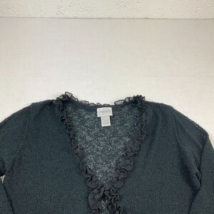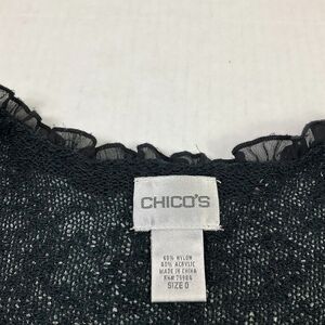 Chico’s Black Ruffle Trim Open Cardigan 0 Small Feminine Textured Knit Sweater