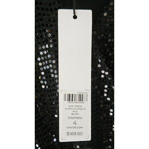 Chico’s Black Sequin Midi Gown NWT Size 4 – Elegant Special Occasion Dress