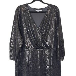Chico's Black Sequin Midi Party Dress XL (Size 3) Glam Sparkle V-Neck Holiday