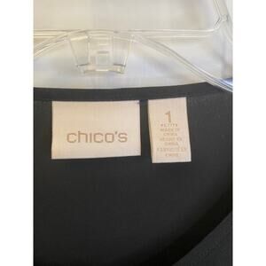 Chico's Black Sheer Blouse 1/4 Button Front Roll tab sleeves Sz 1 (US Med) Petit