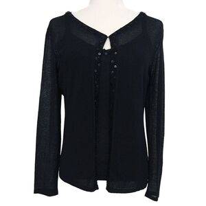 Chico's Black Sheer Sequin Trim Cardigan & Tank Top Set of 2 Elegant Classic