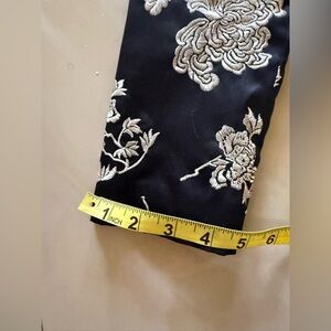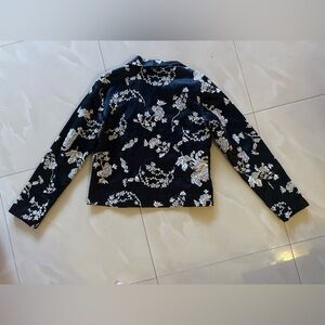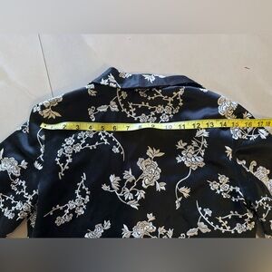 Chicos Black Silk Blazer with White Stitched flowers size 0 open