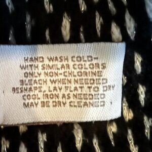 Comfortable cotton blend zip front cardigan from Chico's in black with silver metallic threads.