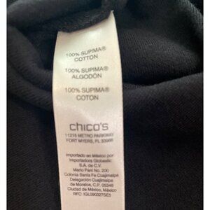 This sleeveless black tank top is crafted from luxurious Supima cotton, offering a soft and breathable feel. Designed by Chico's, it's a versatile staple for layering or wearing on its own. With its comfortable fit and elegant simplicity, this piece is a timeless addition to any wardrobe.