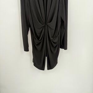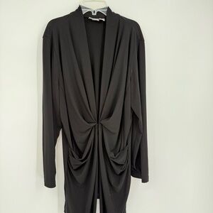 Chico's Black Slinky Knit Ruched Front Long Cardigan size 3 (XL) Long Sleeves