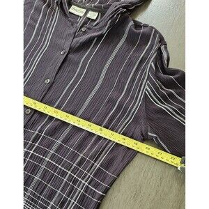 Chico’s Black Striped Crinkle Gauze Hooded Button Up Top Blouse Size 1 Medium