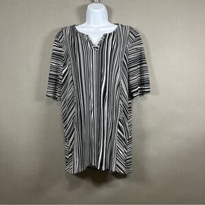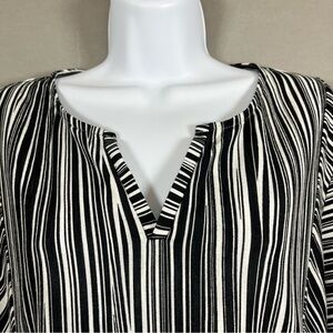 Chico’s Black Striped V Neck 3/4 Sleeve Top Size 3