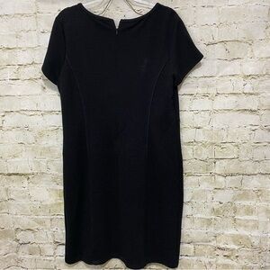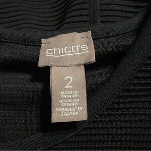 Chicos Womens Size (2) Large Black Textured Striped Sheath Career Dress in excellent used condition. No stains, tears or rips.