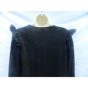 Chicos Black Top V Neck w/Ruffles on Shoulders Chicos Size 2 Long Sleeve