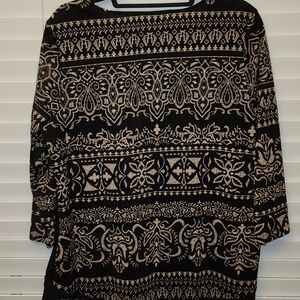 Chicos Black Top with lace accent Sz 2 (Large) Back has beautiful pattern Chest 21in