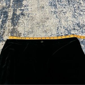 Chicos Black Velour Silk Blend Dress Pants. Has back pockets, and a zipper on the front. As shown in photos above. Please note that a Chicos 3 translates to a US size 16. As shown in size chart and photos of approximate measurements posted above. In great preowned condition. No visible signs of wear. Feel free to make a reasonable offer through the offer button!