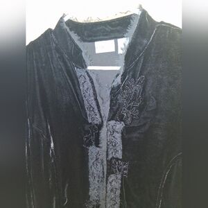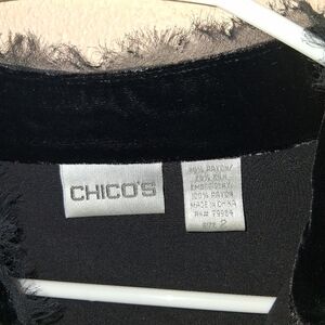 Chico's Black Velvet Beaded Lace Hook Eye Closure Vintage 2/M. Good pre-owned condition