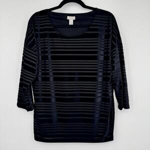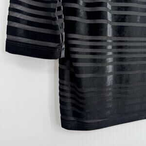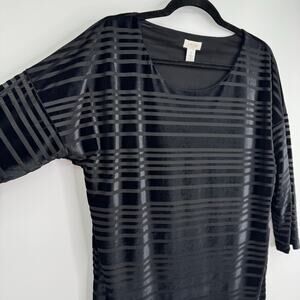 Chicos Black Velvet Burnout Striped Tunic Size 1/M Dolman Sleeve Lined Holiday