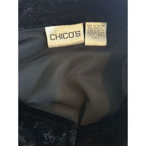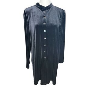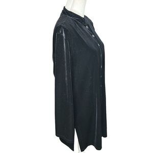 Chicos Black Velvet Long Sleeve Mock Neck Button Down Jacket Tunic Cardigan Size