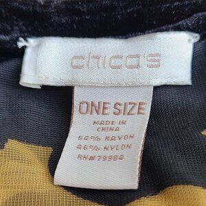 Chicos Black Velvet Sheer Leopard Print Scarf