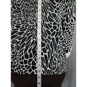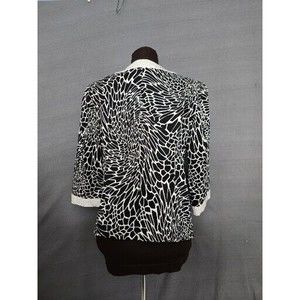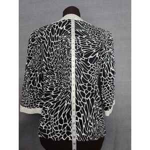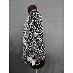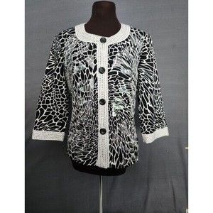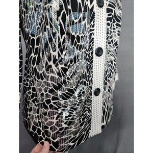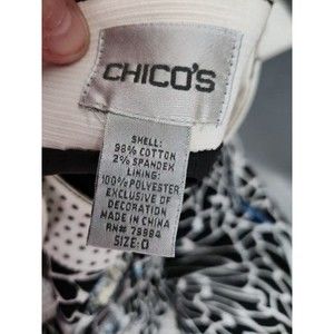 Chicos Black & White Abstract Floral Print Jacket Button Cotton Cardigan Sz 0 Small. Cotton Spandex Blend. 100% Polyester lining. Clear sequins adorn the front. Great used condition no stains or holes. Smoke free home. Check out my other items I will combine shipping