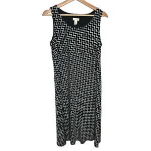 Chico's black and white chevron midi dress in excellent used condition. This stretchy, sleeveless dress is perfect for any occasion! No stains or rips.
