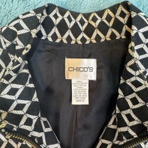 Chico's Black & White Diamond Print Zip-Up Jacket (size 3)