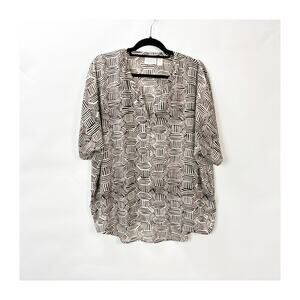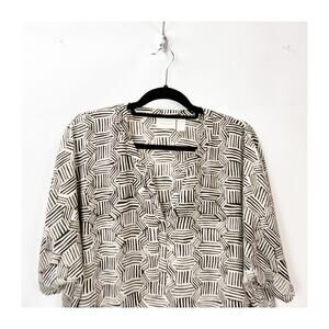 Chico’s Black & White Geometric Blouse Size 2 Large Women Lightweight