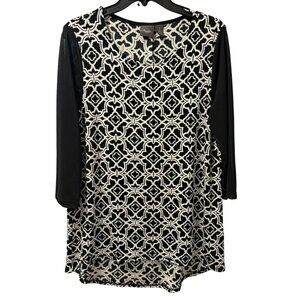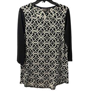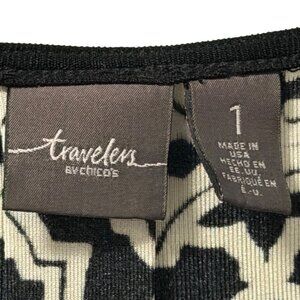 Chicos Black White Geometric Print Travelers blouse Size M tunic