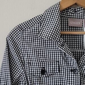 Chico's Black White Gingham Button Front 3/4 Sleeve Shirt Size Small/4