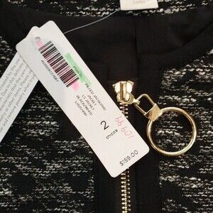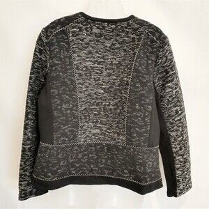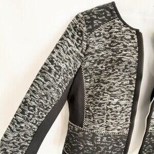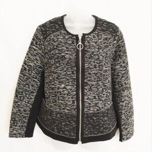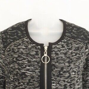 Chico's Black White Knit Animal Print Jacket Size 2 (L) Jacquard Full Zip