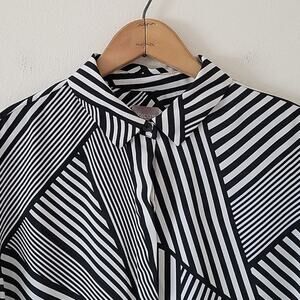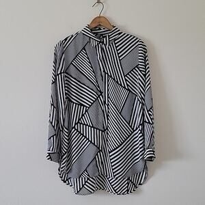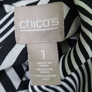 Chico's Black White Mixed Stripe Button Down Tunic Blouse Size Medium