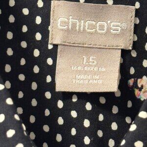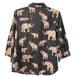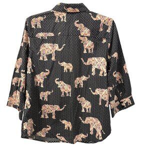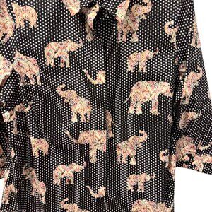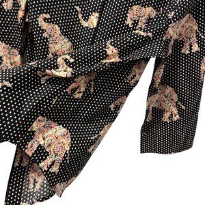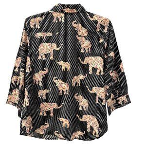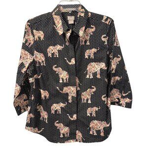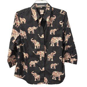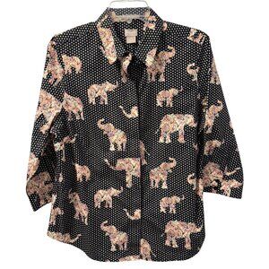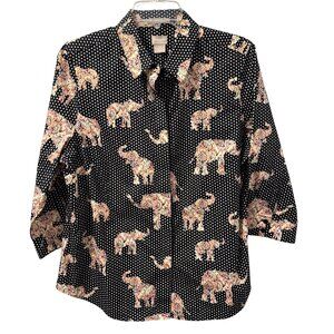 Chicos Black & White Paisley Elephant Print Button-Up Shirt Size 10 blouse