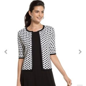 Chicos Black White Polka Dot Open Front Short Sleeve Cardigan Sweater Size 1 M