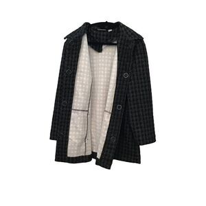Chico's black and white square pattern jacket in a size 2 (Lg/12) features a chic design with practical snap-up pockets.